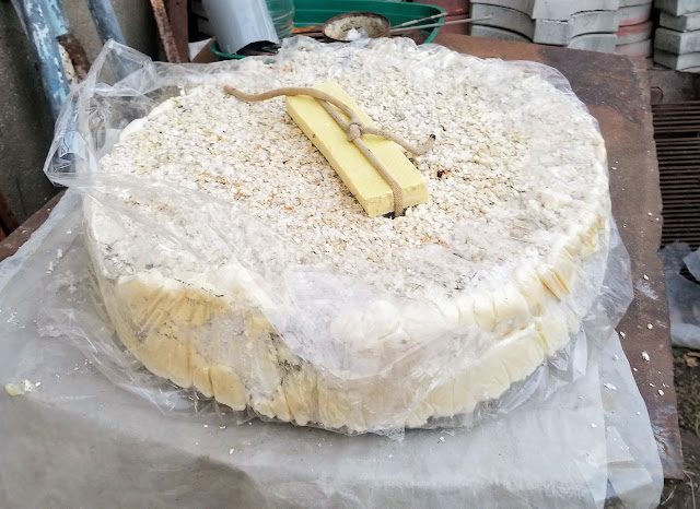 Чтоб не торчать раком над люком реального колодца, притащил из огорода такой же камазовский обод - он будет шаблоном.