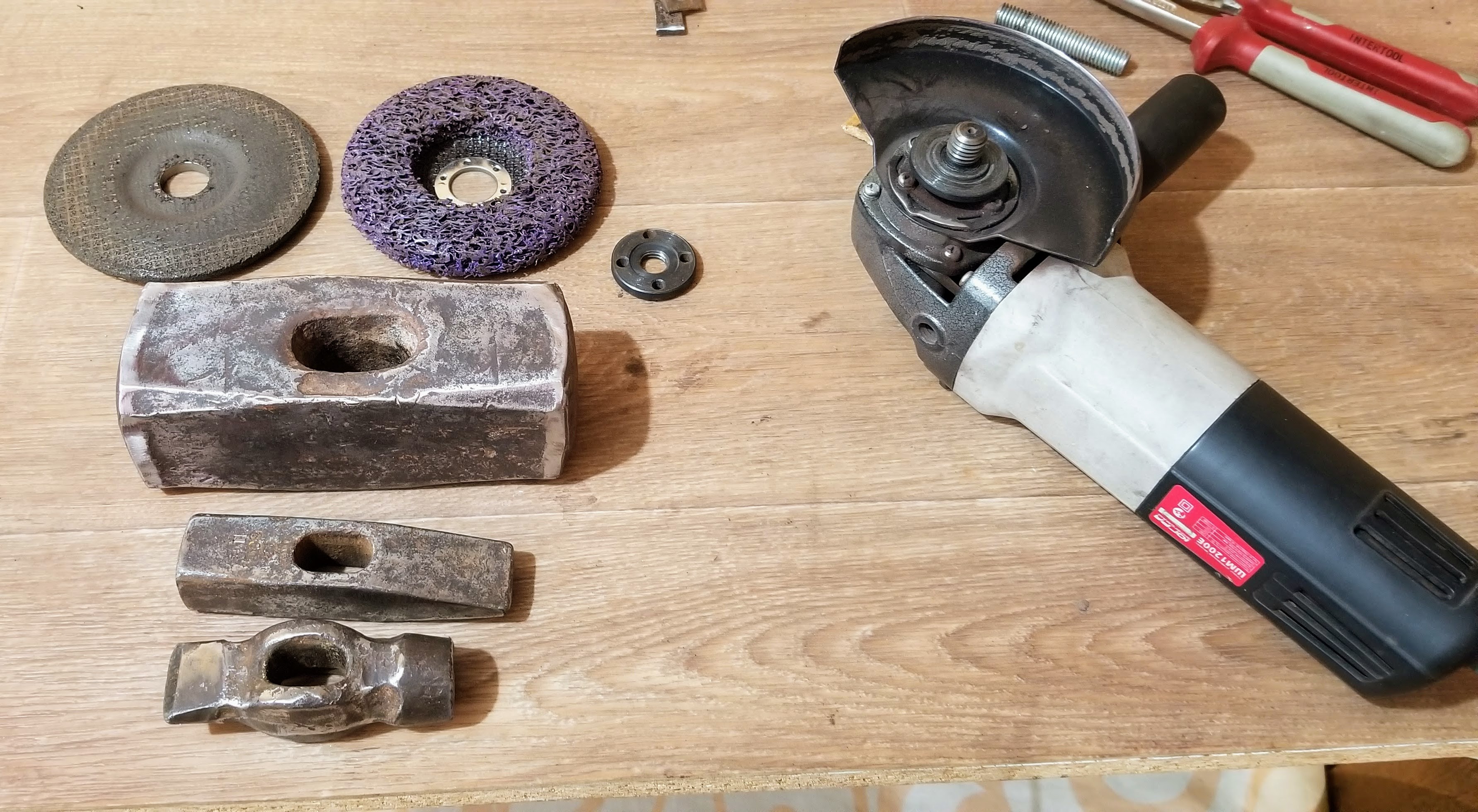 2 старых молотка и кувалда, найденные на даче - вроде инструмент есть, но работать невозможно. Ручки вылетают, один вообще без ручки =)